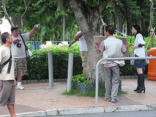 Note: I only translated Charmaine's part. Dayo Wong and Charmaine Sheh appeared at Causeway Bay last night and filmed separately. After Charmaine argued loudly with Benz Hui and angrily left on taxi, Dayo entered the camera and gave advise on handle women with Benz. Though Dayo did not share any scenes with Charmaine, he arrived early. While he was waiting for his turn to film, he read his script or chatted with filming crew. Not only he didn't interact with Charmaine he also stood far away. On the other hand, Charmaine chatted happily with Benz. Kissing scenes are secret weapons When asked if Dayo is attracted to Charmaine, he only said that their collaboration is a happy one. Dayo denied that they don't have interaction and indicate it's because they did not share scene together (that night). He also stood up for Charmaine, saying that she is not flirty like the tabloids accused. Dayo said that he is not 'electrified' by Charmaine: "I cannot control rumors, I’m not 'electrified', everyday when we work we joked and it's very happy. I won't avoid anyone just because I'm afraid of rumors, I have the most on-screen time with her in the series." Regarding whether they will have kissing scene, Dayo expressed that he have not seen it in script to date and joked that it might be a secret weapon. Charmaine wore a sexy red dress last night and covered herself with a shawl before filming. Some drunken drivers passed by and praised her as beautiful, Charmaine gave a smile to acknowledge them. She looks great in that red dress, I remember she wore it to HKJure dinner as well. Seems like Charmaine have plenty of wardrobe changes in the series, so far I've never seen her wearing the same clothes twice during filming. On contrary, Dayo worn the same overcoat since day one, like [TCTU]. Here's some pictures taken from various anonymous passerby and extra actors: There's another one where she wore a red top with miniskirt... but I forgot where I place it. But anyway it's just a far shot of her back. p.s. Have you visited Charmaine's TVB Blog today? http://blog.tvb.com/charmainesheh/ Credit: Sehseh's Blog