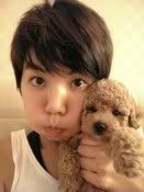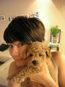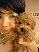 Ella with her newborn 'grandson' , Tie Dan . Four months ago, Ella and male model Kagami Tomohisa became doggie in-laws. Kagami Tomohisa’s red Toy Poodle [Peony] was very fertile and earlier gave birth to three little red Toy Poodle puppies. This added a new member for Ella’s home when she excitedly brought back little [Tie Dan], the last pup to be wean off mother’s milk. Yesterday she laughed: [Tie Dan is really too adorable. Perhaps it was because he was not used to being wean off milk yet so he kept rushing up to his father Ah Gui and bit his {family jewel}. The pain caused Ah Gui to turn around and ferociously bites at little Tie Dan. His expression was really funny.] The relationship between S.H.E has always been very strong. Even the dogs that they have as pets are of the same lineage. It all started with Selina’s beloved pet Pinky giving birth to three puppies. They each kept one of the puppies to symbolize the never-changing and continuation of their friendship throughout the generations. Sure enough, this thoughtful intention of Selina slowly blossomed and bore fruit. Ah Gui, the male pup chosen by Ella in the beginning [hooked up] with Peony, the red Toy Poodle of male model Kagami Tomohisa four months ago. Recently Peony gave birth to three pups. Ella was extremely thrilled. She laid claims to one of the male pup and named him [Tie Dan]. Tie Dan has an innocent look about him and according to Ella’s description, his dark eyes seem slightly cross-eyed yet also slightly slanting and he is super adorable. When he was brought home, his doggie papa was not happy at all and in fact, was a bit sulky about it. She laughed: [Because Tie Dan is too active, jumping and running all over every day. Furthermore, he is probably still not used to being weaned off milk yet. Every time he sees Ah Gui he would rush up to him and ferociously bite on his father’s...(birdie). The pain would cause Ah Gui to get angry and ferociously bites him back. The way these two dogs interacted is just too funny.] When little Tie Dan returned to Ella’s home in accordance to his heritage, as soon as dog-lover Hebe heard the news, she immediately rushed over to Ella’s place to visit and was teased by Ella [One would think that the dog is yours]. However, Selina, the real [ancestor], was busy that day and thus far, still had not have a chance to see the cute and naughty ways of her [great-grandson]. Yesterday, the trio gathered at the recording company to try out new looks and styles for the upcoming new album. [Tie Dan] was the main focus of their conversation topic. However, because of their desire to present only the best, the release date of their new album kept being delayed. The earliest release date would most likely be the end of the September and they hoped that their fans will understand. translated by : wyn0602 of CEFC credits : babyval22 , wyn0602 of CEFC and udn news original source : http://udn.com/NEWS/ENTERTAINMENT/ENT2/4479458.shtml more related pictures : these pictures are taken from Ella's latest blog entry .more pictures of Tie Dan , can be seen in the original link for the pics below . pictures credits : http://www.him.com.tw/blognews/she_blog_2008-08-14_167.php *huhuh..now , once again ,some of the contents for this news seems to be extracted from Ella's latest blog entry ..both of Tie Dan and his 'grandmother' are definitely toooooo cutee for words . huhuh..just look at their eyes . they have large and sparkled eyes in those pictures..I just can't stop staring at how adorable and cute Ella and Tie Dan together..Ella's such a loving grandmother indeed .she looks naturally pretty in those pictures ,even without an ounce of makeup. gah , how I wish I can have nice complexion just like hers . and Tie Dan is very naughty ,keep on biting his father's 'property' . ekekeke..I'm sure that Ah Gui right now would be very jealous since Ella has to share her love between Ah Gui and Tie Dan .ekeke. btw , the model , Kagami Tomohisa is the Japanese guy who acted in S.H.E 's Ta Hai Shi Bu Dong MV , before ...Selina must very excited to see her new 'great grandson' .ekekeke.. it's touching and cute to see how dogs are also one of the 'entity' that bonds S.H.E's relationship. together . really can't wait for S.H.E s latest album release . hopefully it won't be delayed more after this ..it has been more than one year after their PLAY's album released before . can't wait for their new looks and images too .huhuhuh. btw , for those who wants to read S.H.E's translated blog entry , here's the link : http://www.she911.blogspot.com